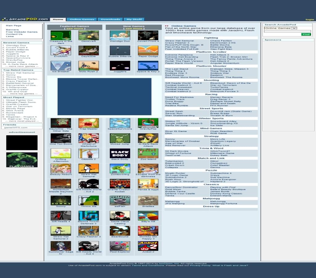Categorized directory/collection of online games. Includes player submitted ratings and reviews.